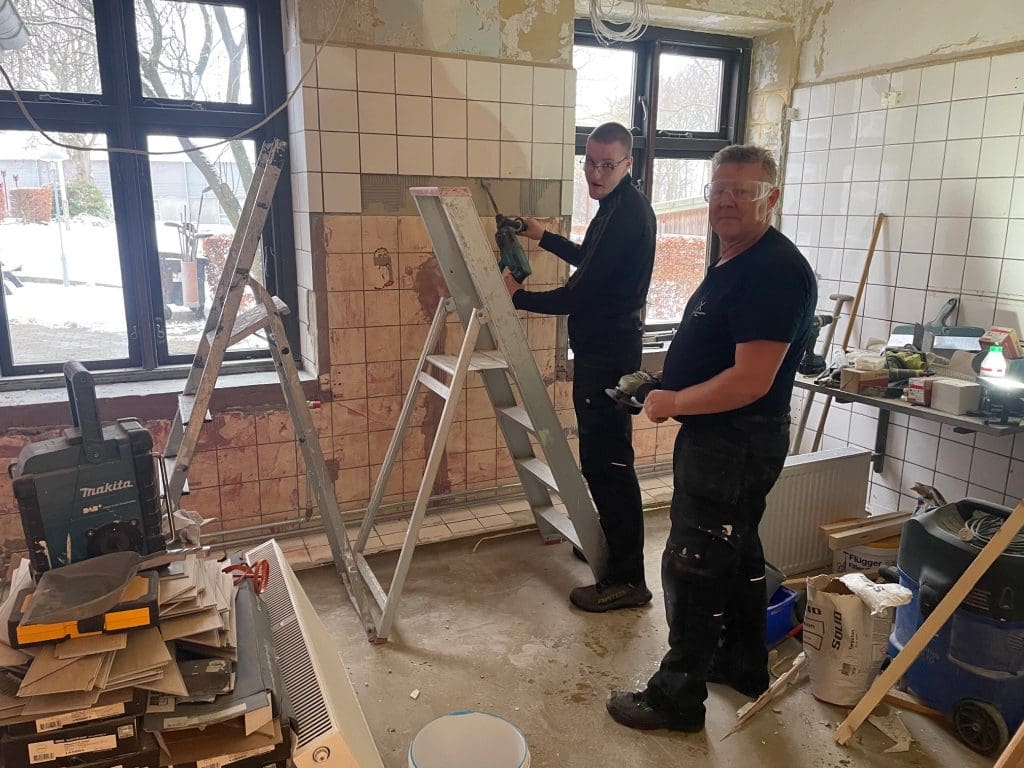Men når dette er klaret, går pedellerne også stadig og renoverer og bygger om godt hjulpet af nogle af eleverne på ”Park og Service linien”. Det gamle køkken er nu snart totalt forvandlet til 4 lokaler. Mette Terp, vores trivselsmedarbejder, har kontor i et lokale, der er blevet et nyt vagtrum for lærerne, hvor de kan sove godt, når de har nattevagt. Der er lavet et dejligt stort mødelokale, som bliver flittigt brugt. Lige om lidt er det sidste rum færdigt og bliver til et skønt, mindre mødelokale.