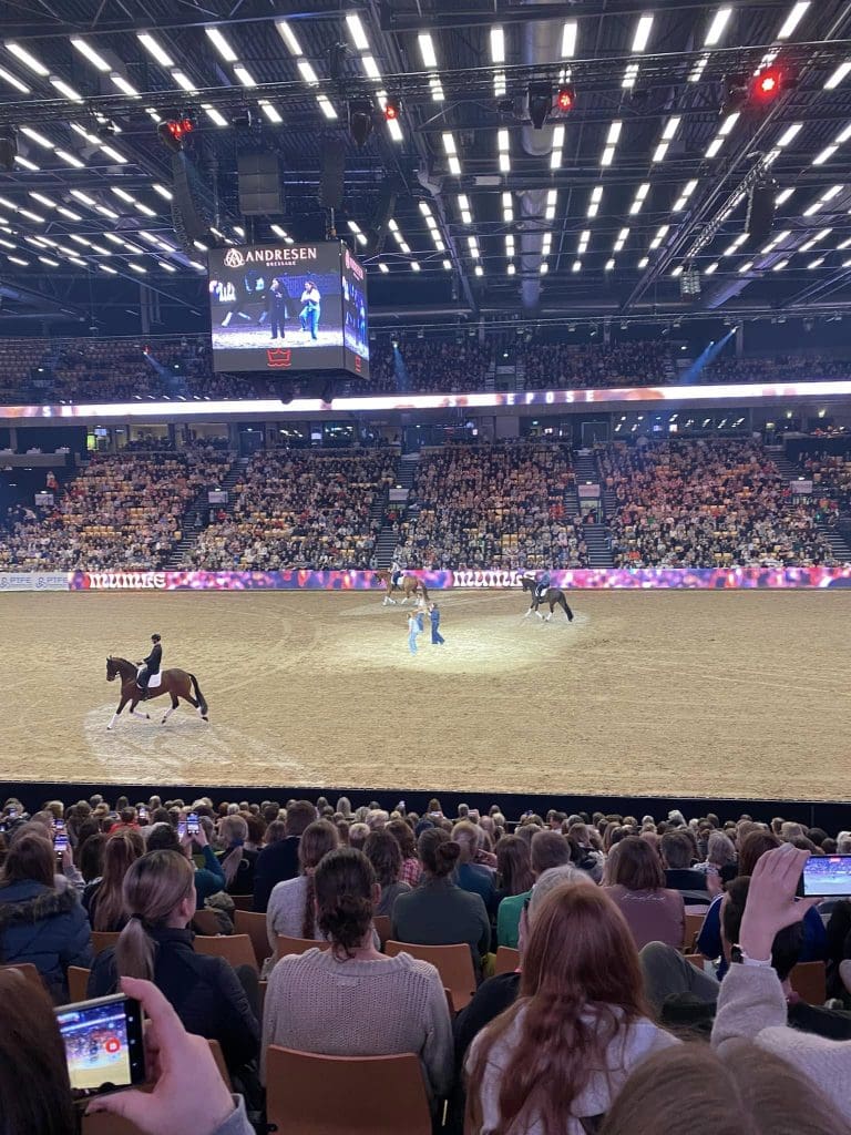 Fra tidlig morgen kl 08.00 til kl. 02.00 tog rideholdet madpakkerne under armen og kørte til Blue Horse i Herning, hvor de oplevede Dansk Varmblods Hingstekåring 2025, afsluttet med Hingstekåring gallashow. Det var en fantastisk dag! 3 kæmpe haller med salgsboder som solgte hestebom og udstyr, som kun drømme sætter begrænsninger for. I andre haller var der fremvisninger af hingste og i andre igen, var der dressurspring. Det helt rigtige paradis for hest og rytter. Link til det forrygende skue her